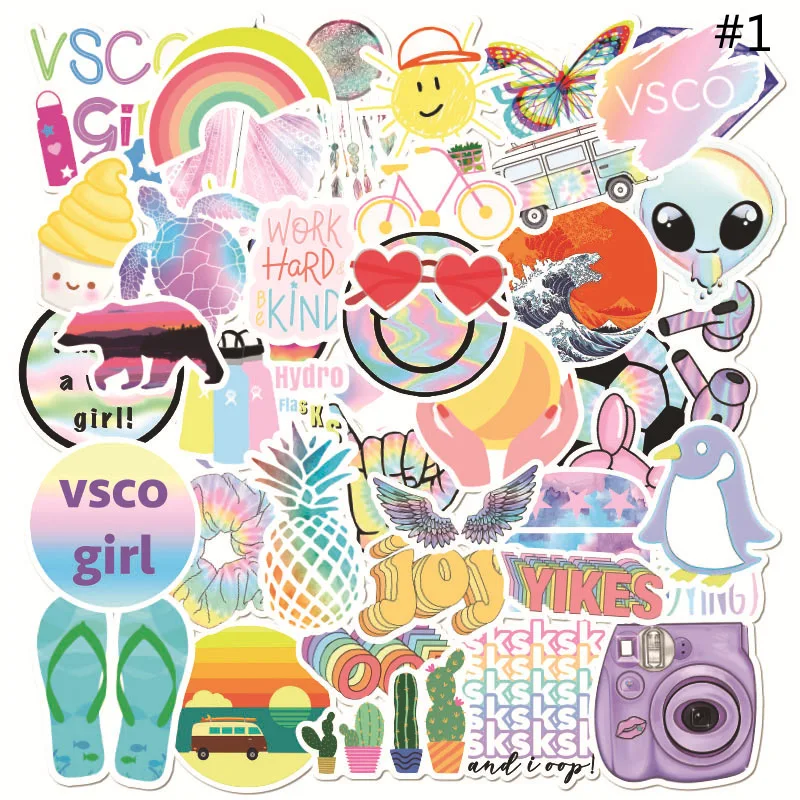 50pcs Lot Pack New Lovely Vsco Girl Stickers Decal 6 Style Diy For