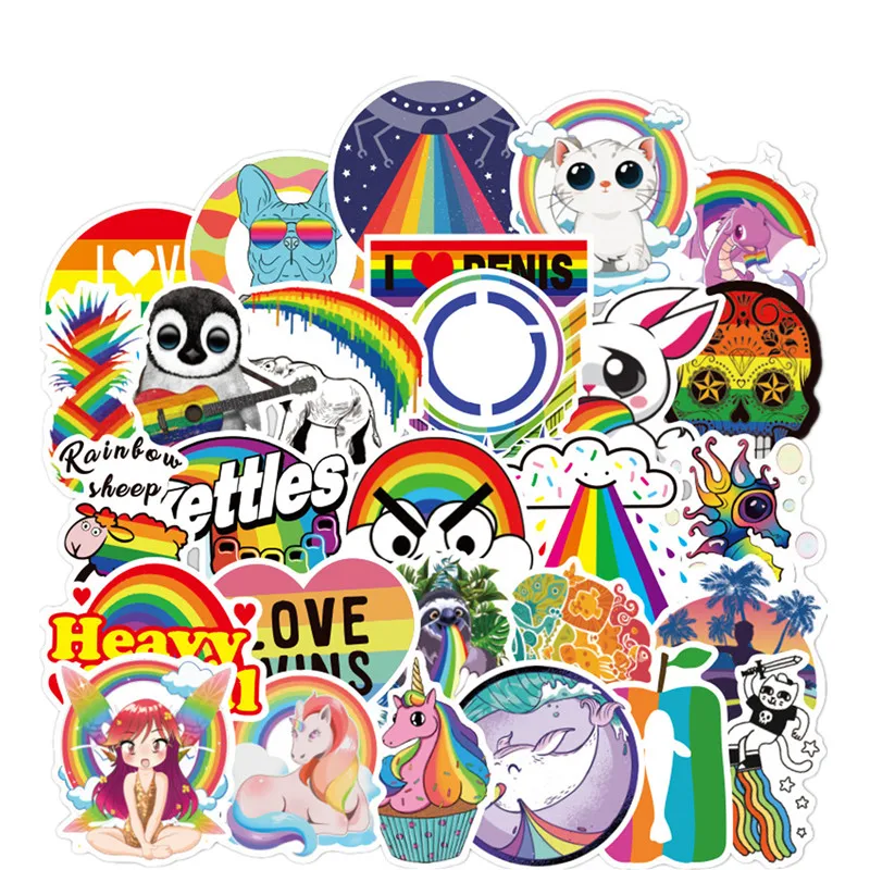 50 Pcs Cartoon Colorful Vsco Rainbow Stickers For Chidren Toy