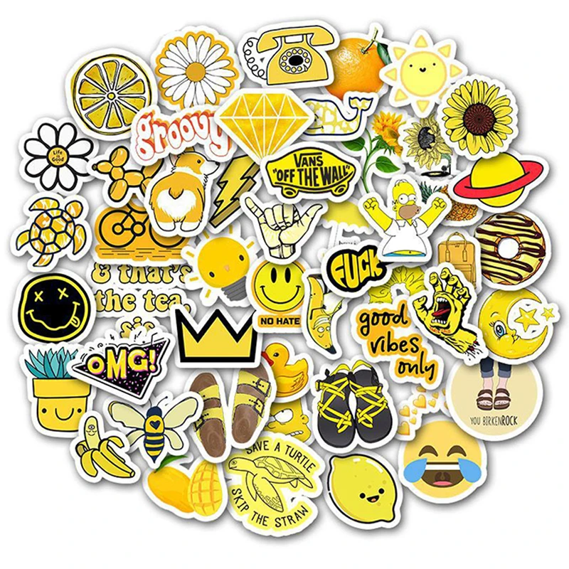 50 Pcs Cartoon Yellow Vsco Stickers For Chidren Toy Waterproof