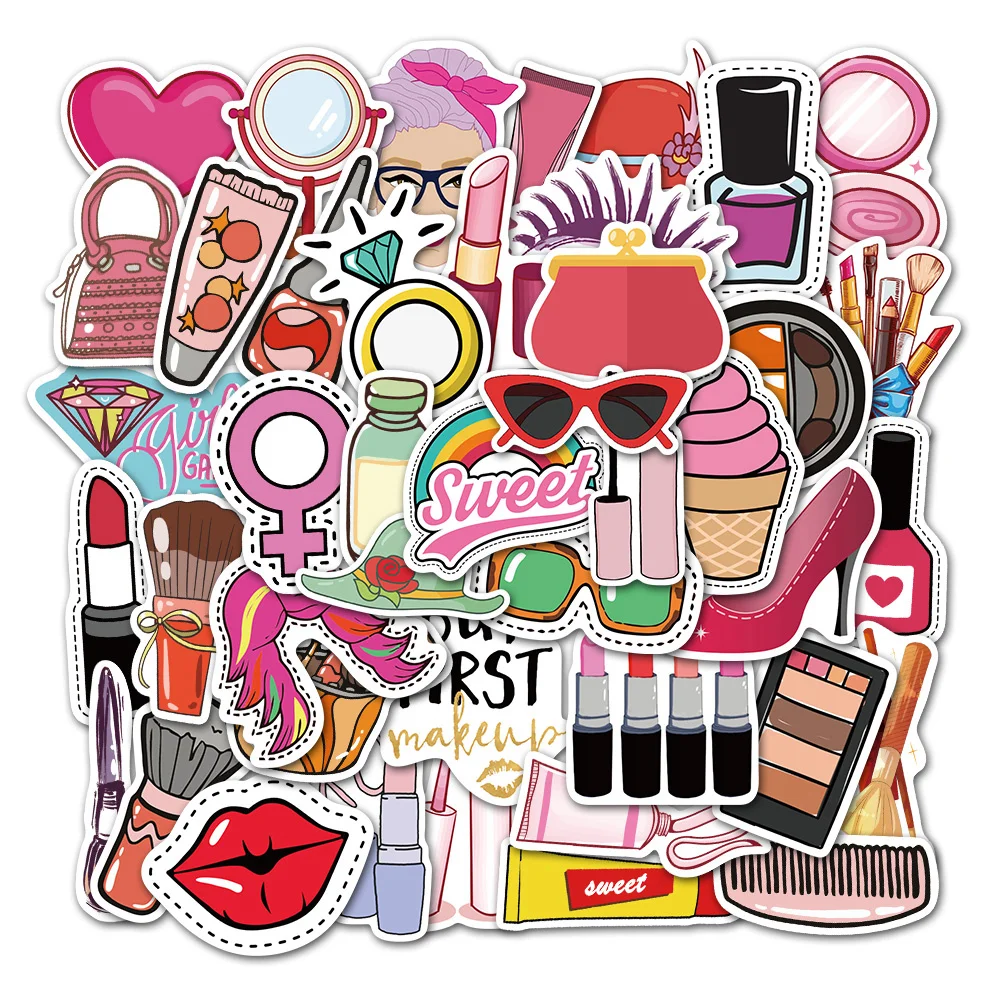 50 Pcs Pvc Waterproof Vsco Makeup Girls Kawaii Pink Fun Sticker