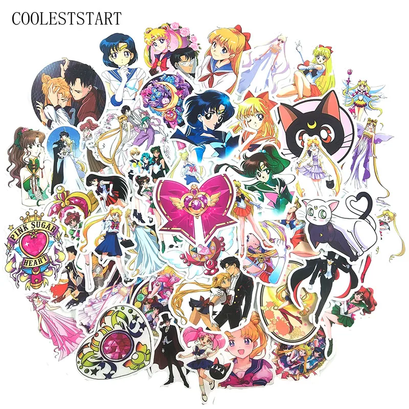 50pcs Set Cartoon Sailor Moon Stickers For Vsco Girl Motorcycle
