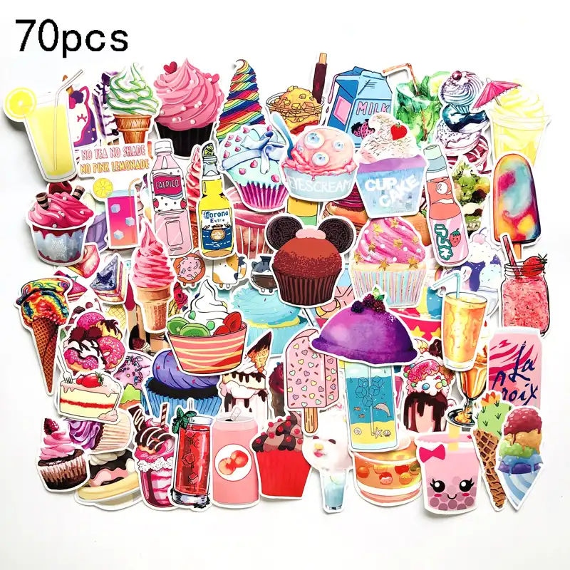 70pcs Colorful Summer Drinks Ice Cream Vsco Sticker Dessert For