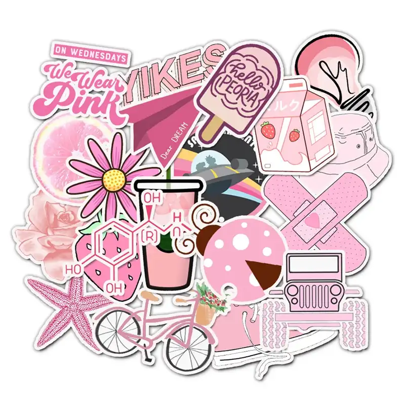 50pcs Cute Stickers Vsco Girls Pink Anime Waterproof Decal Sticker