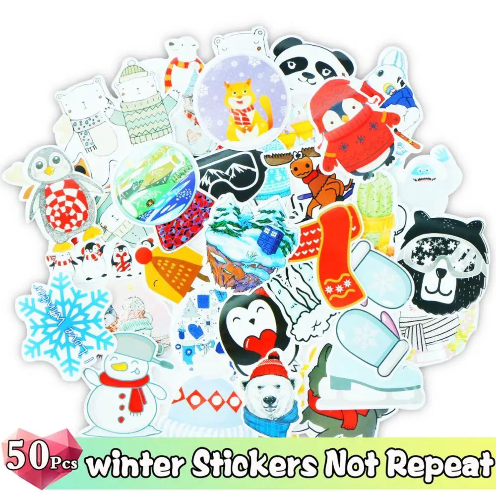 50 Pcs Vsco Girls Winter Stickers Cartoon Snow Elements Scarf