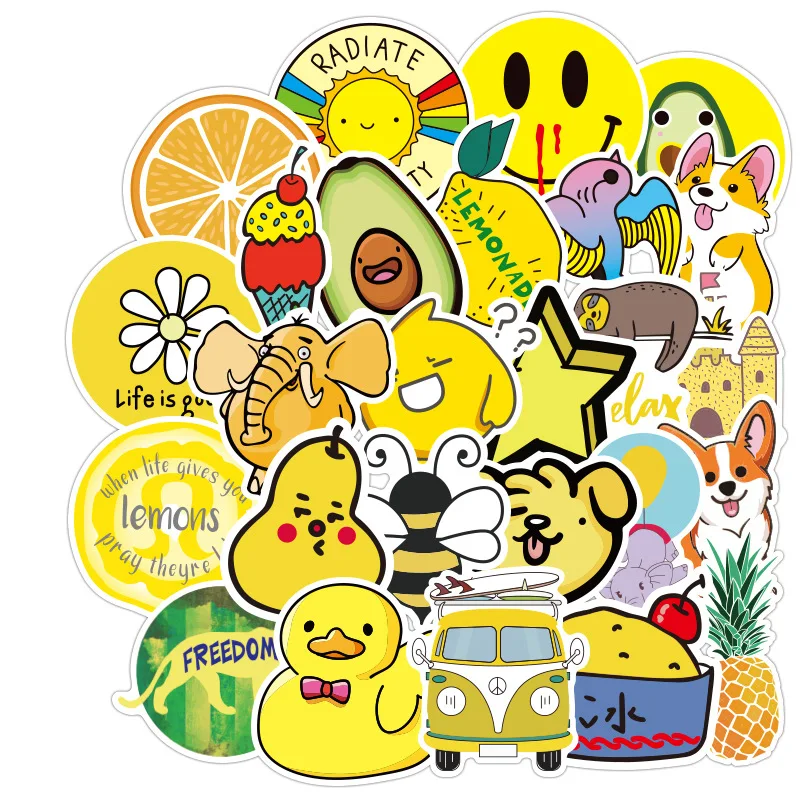 50pcs Cartoon Yellow Ins Style Vsco Girl Stickers For Laptop Moto