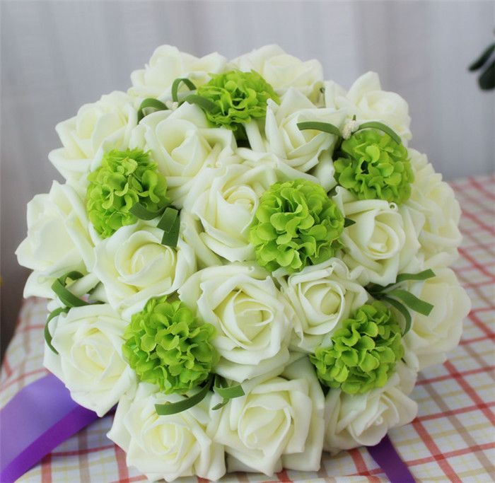 2020 Bridal Bouquer Dia 18cm 7 Artificial Flowers Foam White Rose