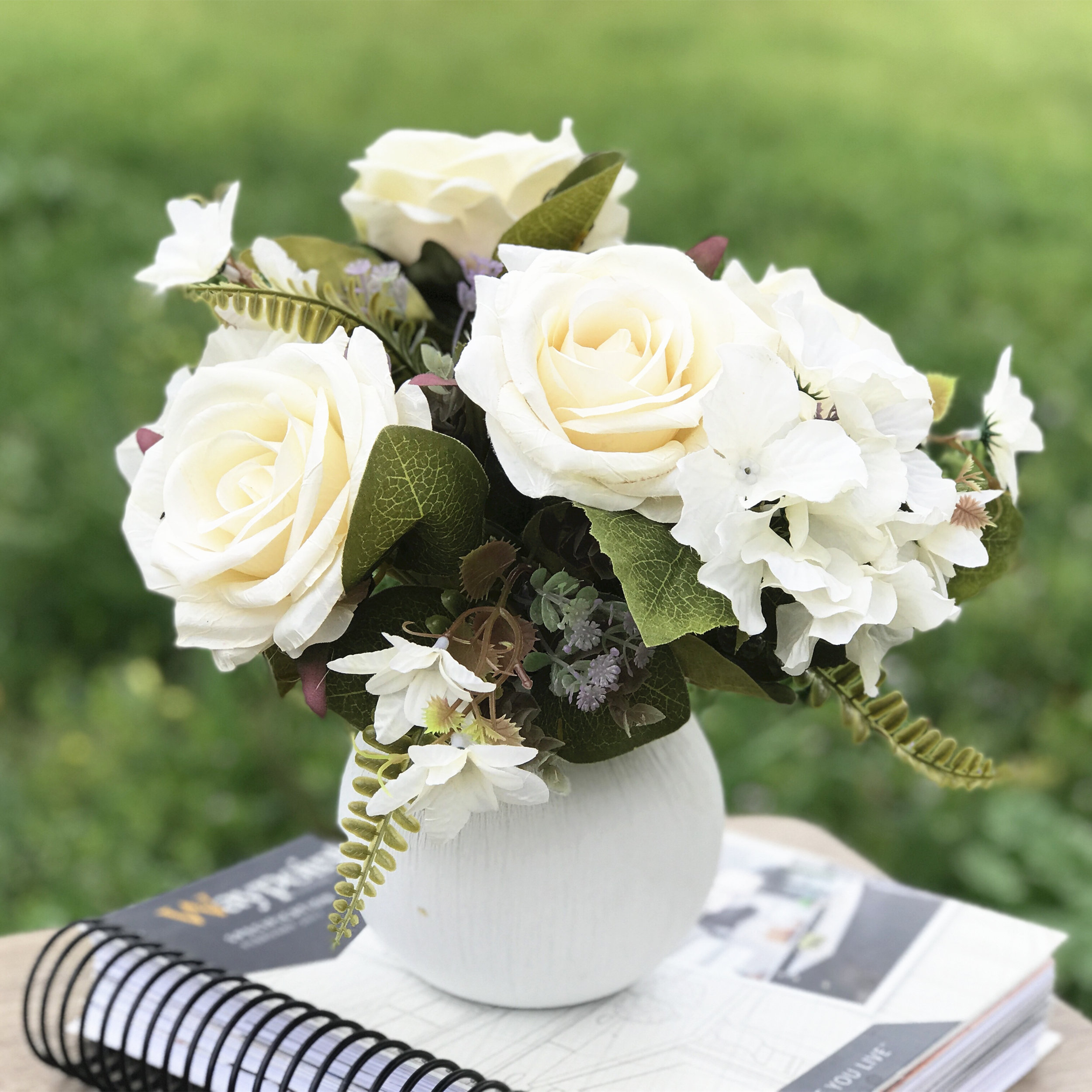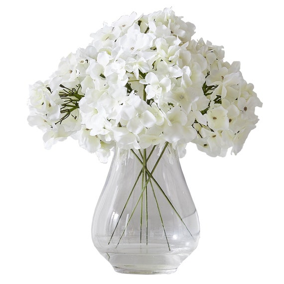 Elegant White Hydrangeas Vase Artificial Flower Arrangements