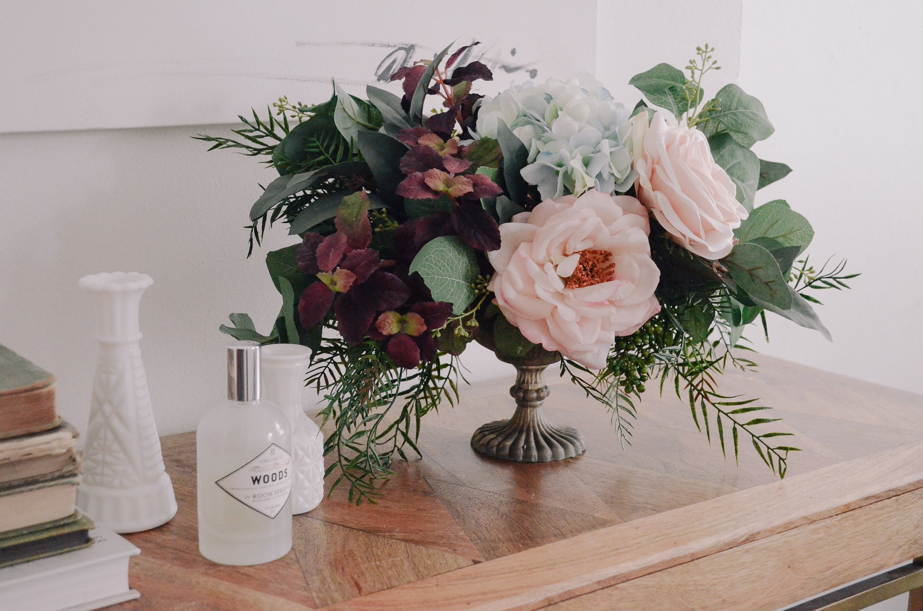 Burgundy Purple And Olive Green Faux Floral Arrangements Etsy