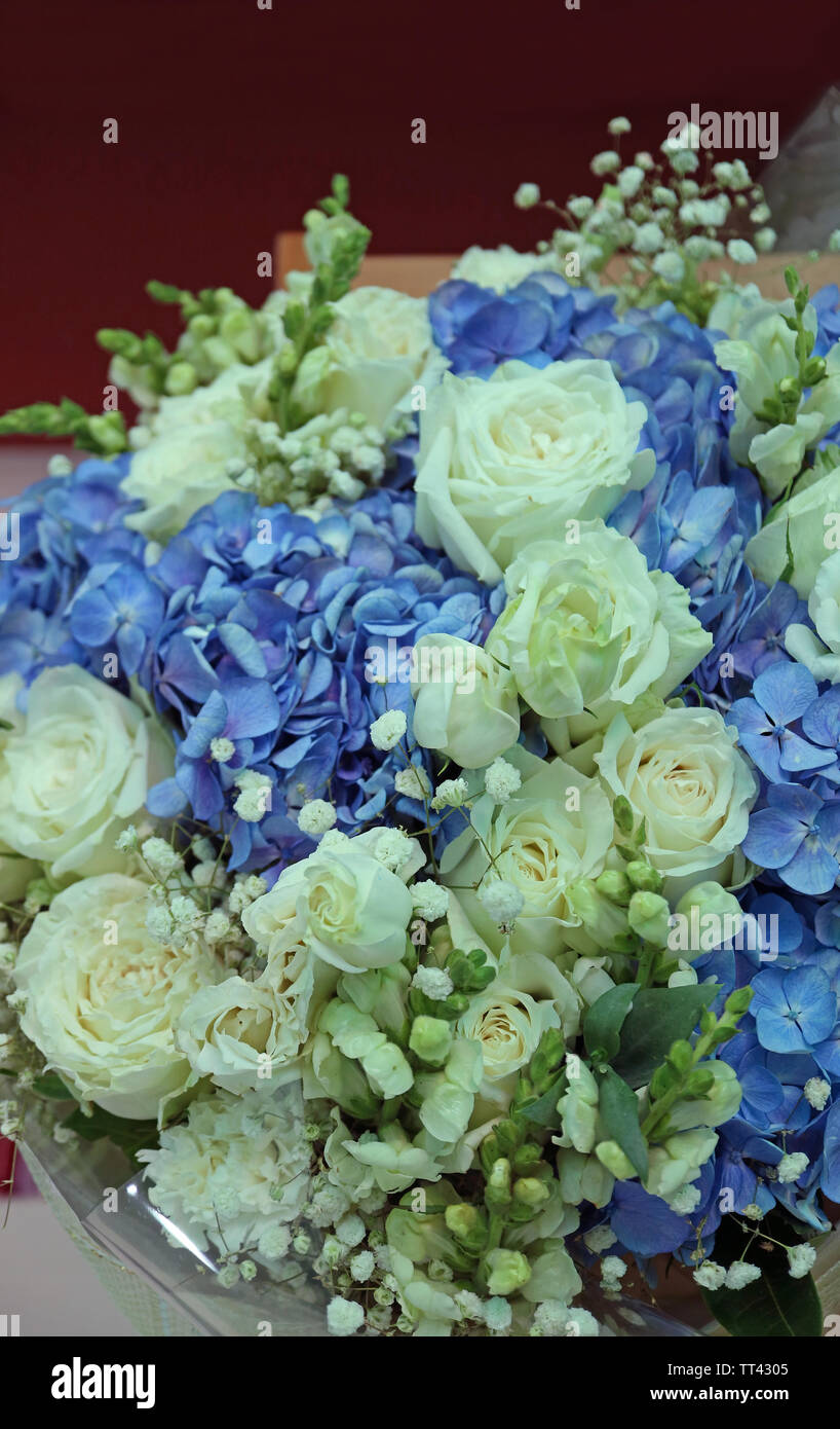 Artificial Blue White Hydrangea Flower Bouquet Stock Photo