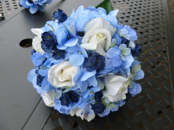 Blue Hydrangea Bouquet With White Rosesnavy Blue Accent Etsy