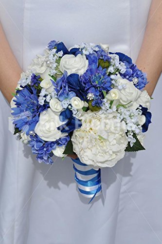 Royal Blue Hydrangea White Peony Bridal Wedding Bouquet Amazon