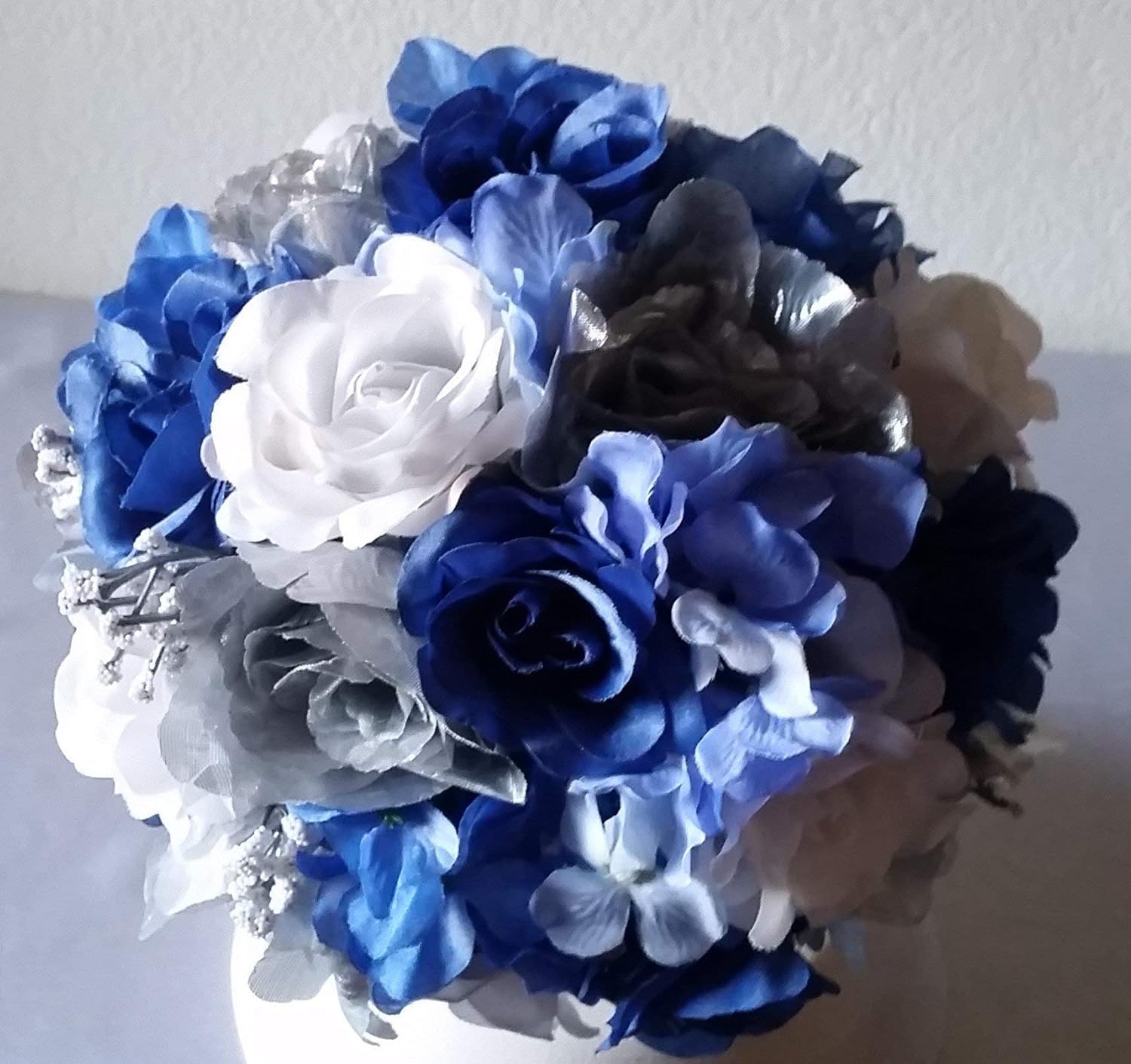 Amazon Com Royal Blue Silver White Rose Hydrangea Bridal Wedding