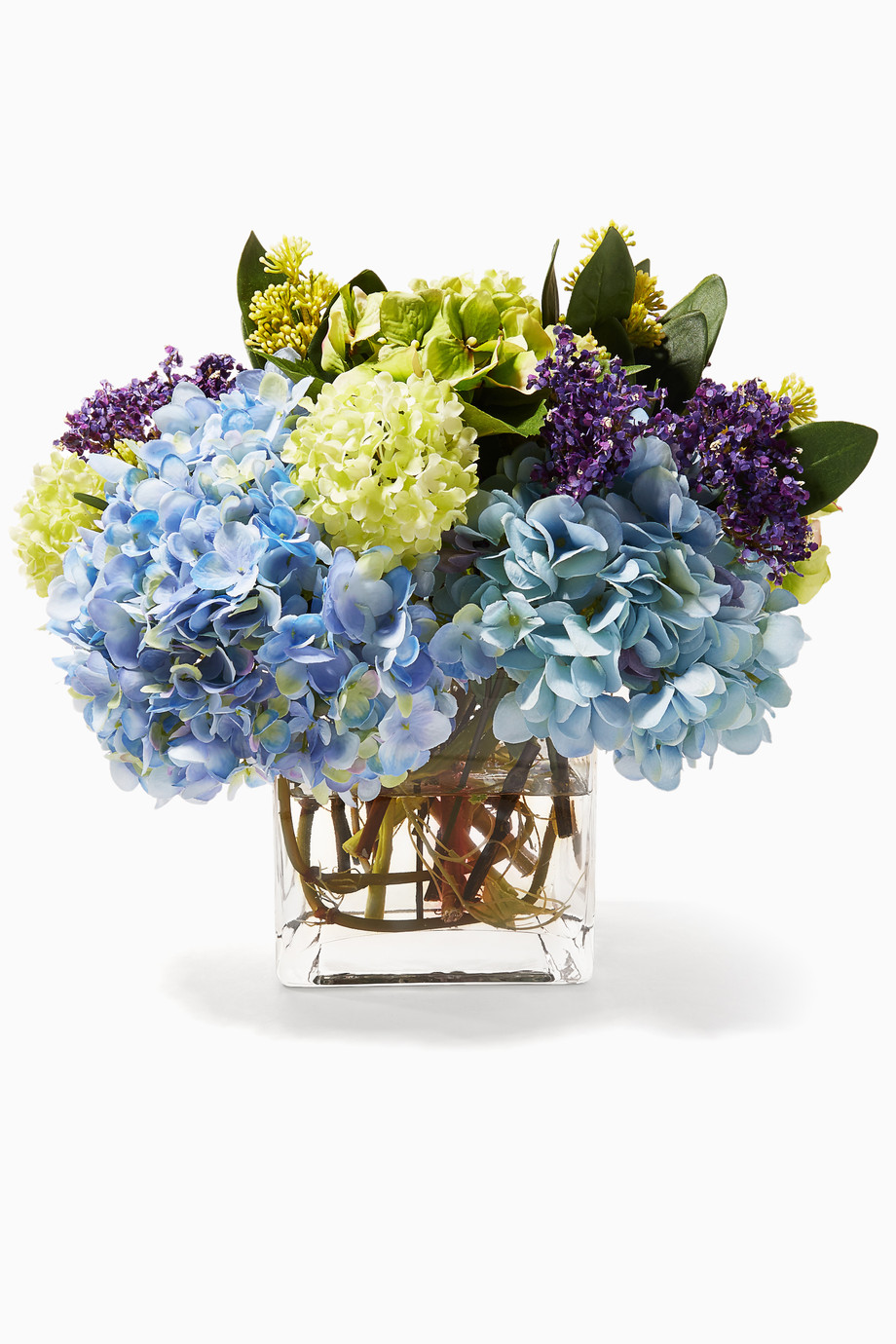 Shop Ndi Blue Blue Purple And White Hydrangea Bouquet In Glass