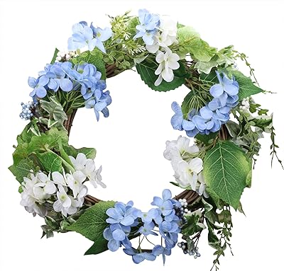 Qunwreath Handmade Floral 18 Inch Blue White Hydrangea Series
