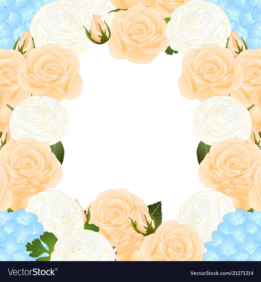 Orange Rose Blue Hydrangea And White Ranunculus Vector Image