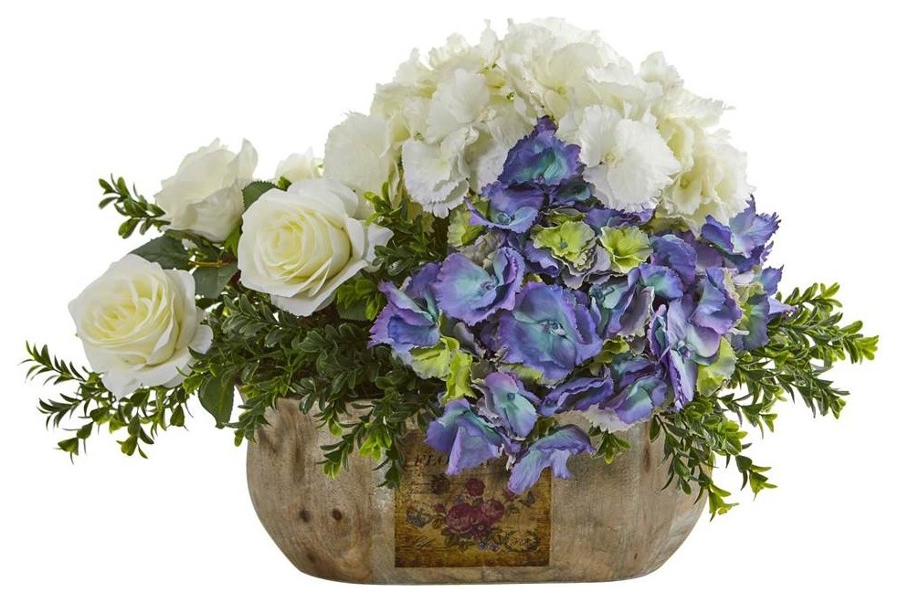 Rose And Hydrangea Artificial Arrangement In White And Blue