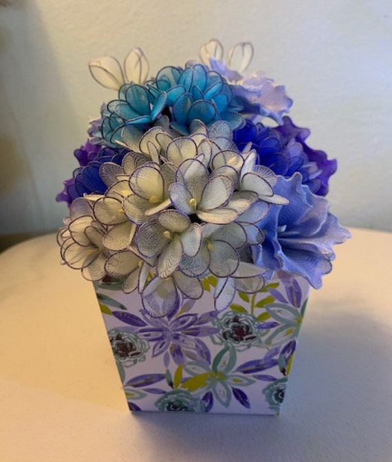 Blue Hydrangea Blue Purple Flower Arrangementgift Box Etsy