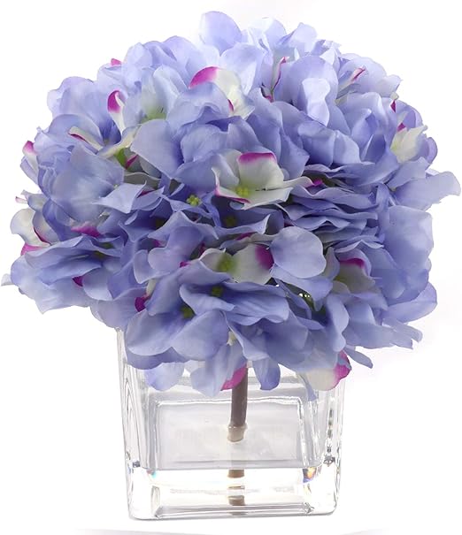 Blue Hydrangeas In Glass Vase Artificial Flower Arrangement
