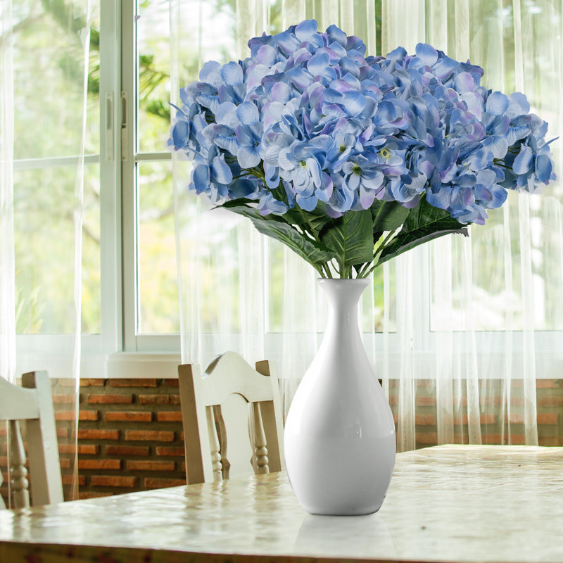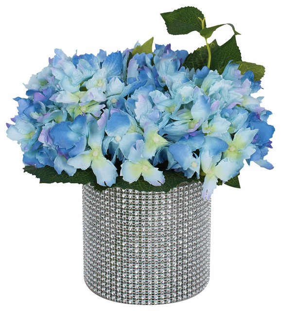 9 Blue Hydrangea In Round Vase Contemporary Artificial Flower