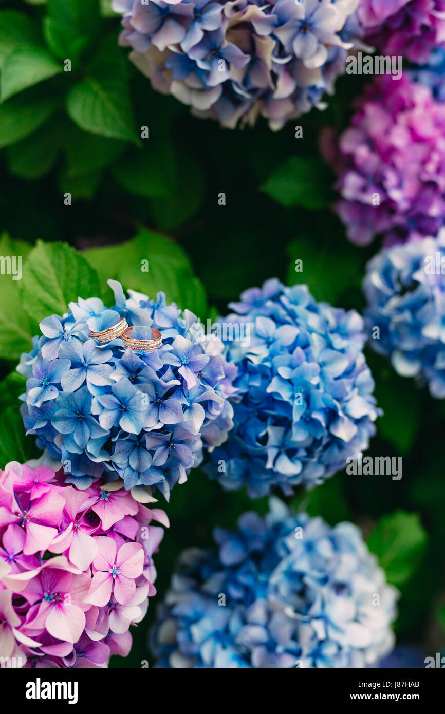 Wedding Rings On The Hydrangeas Wedding Jewelry Stock Photo