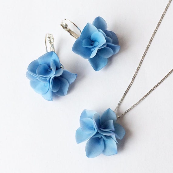 Blue Hydrangea Jewelry Set Sterling Silver Necklace Etsy