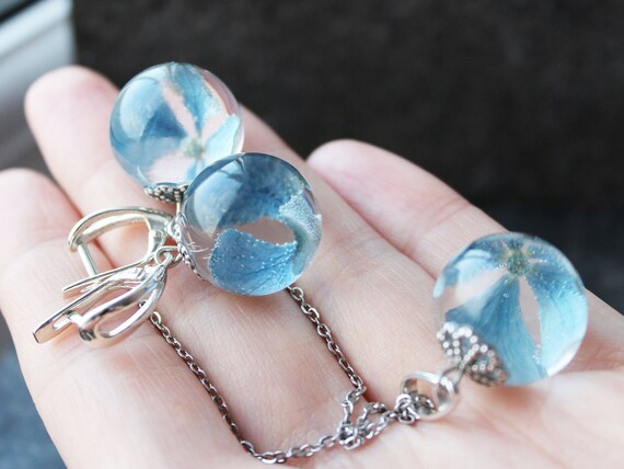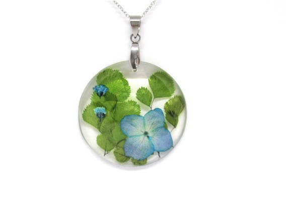Blue Hydrangea Jewelry Flower Resin Necklace Pressed Flower Etsy
