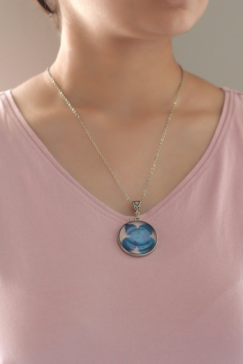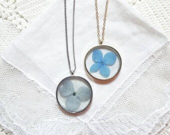 Blue Hydrangea Pressed Flower Necklace Impressed By Nature