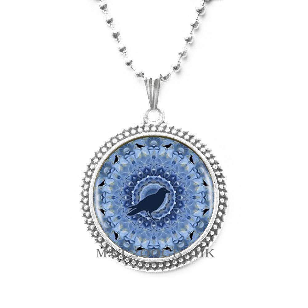 Amazon Com Blue Hydrangea Crow Mandala Logo Pendant Necklace