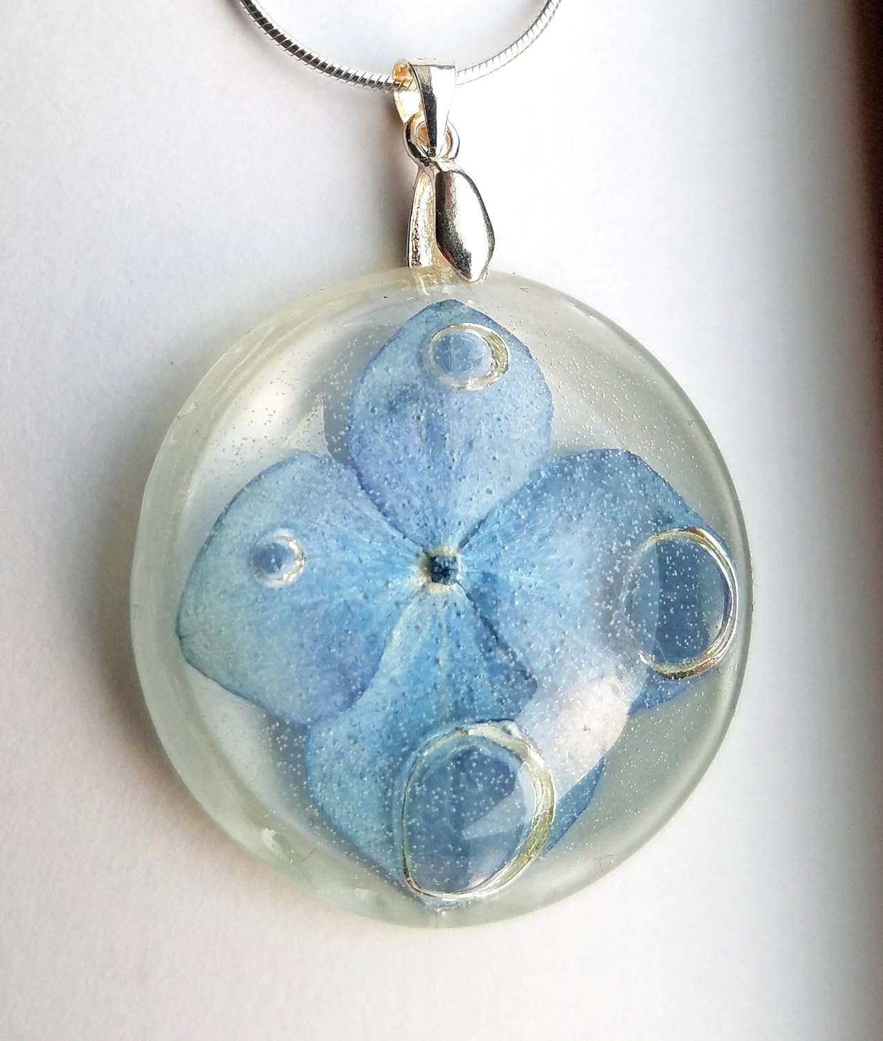 Resin Necklace With Real Blue Hydrangea Flower Real Plant Pendant
