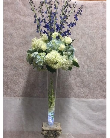 The Miriam Blue White Hydrangea Centerpiece Crested Perch