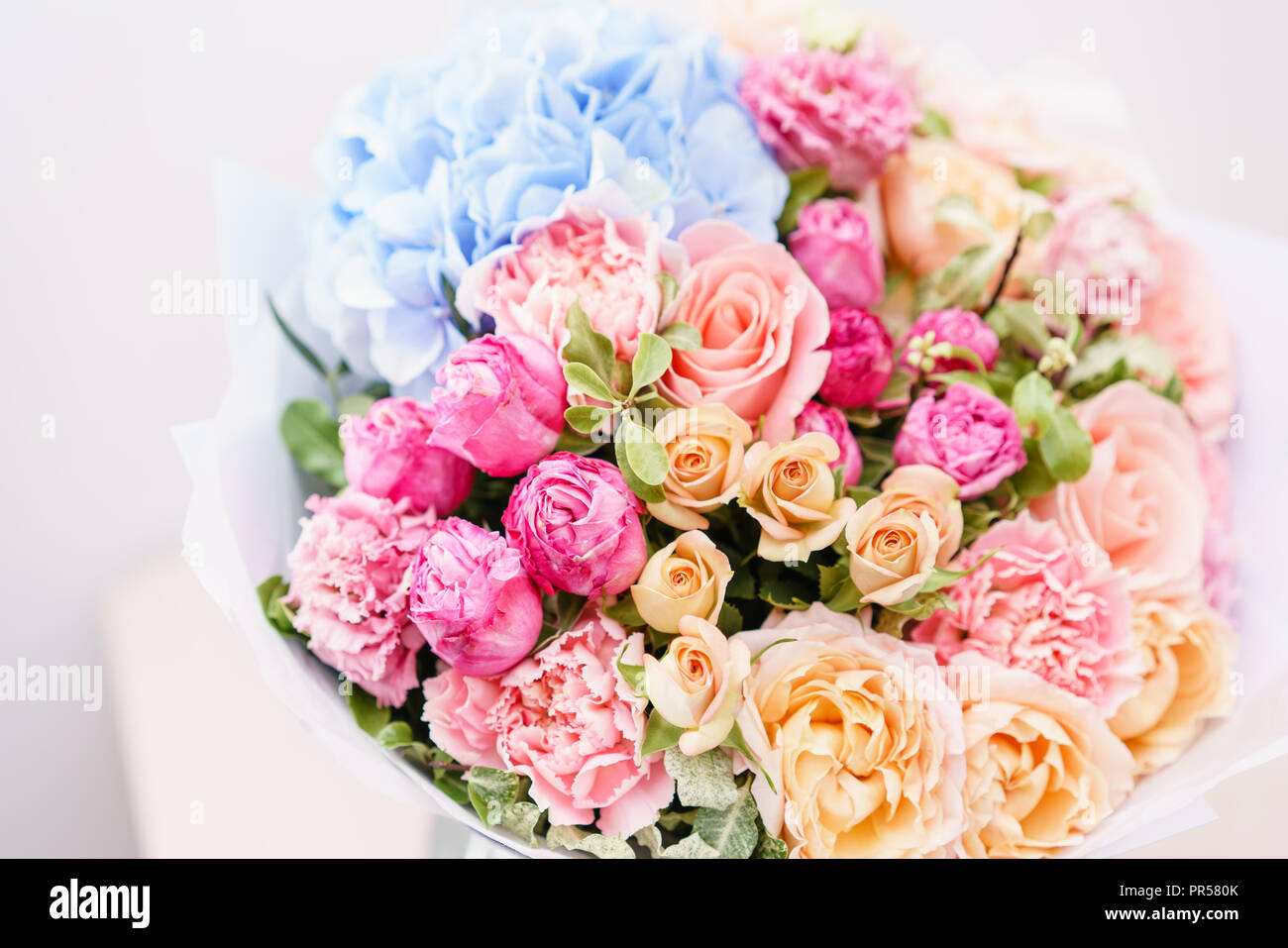 Big Bouquet Of Fresh Flowers Pink Blue Hydrangeas White Roses And