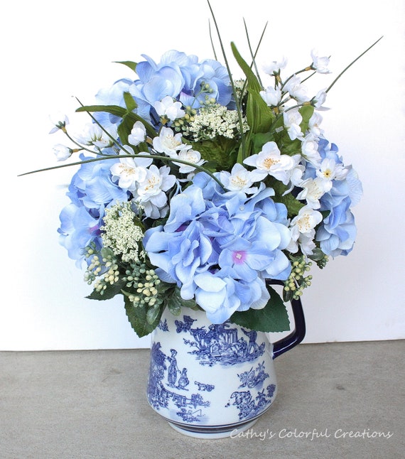 Clearance Hydrangea Centerpiece Blue And White Farmhouse Etsy