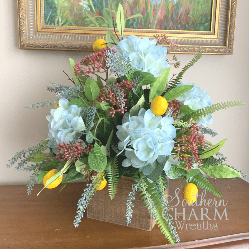 Hydrangea Arrangement Blue Hydrangea Centerpiece Wood Box Etsy