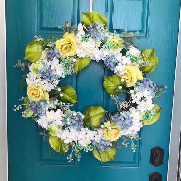 Spring Wreath Front Door Wreath Large Rose Easter Hydrangea Etsy