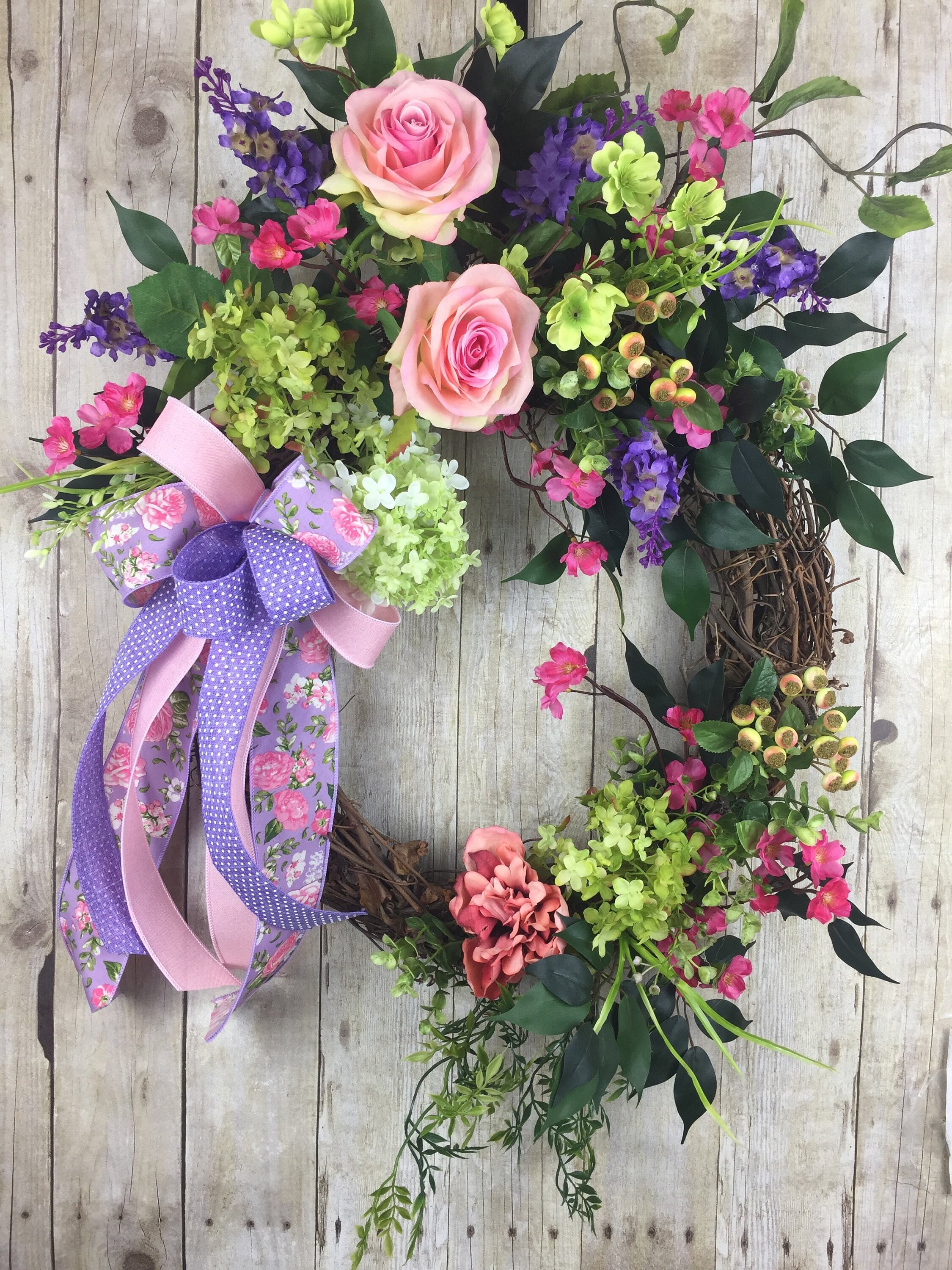 Mama S Garden Pink Rose And Hydrangea Wreath In 22 And 30 Lovely