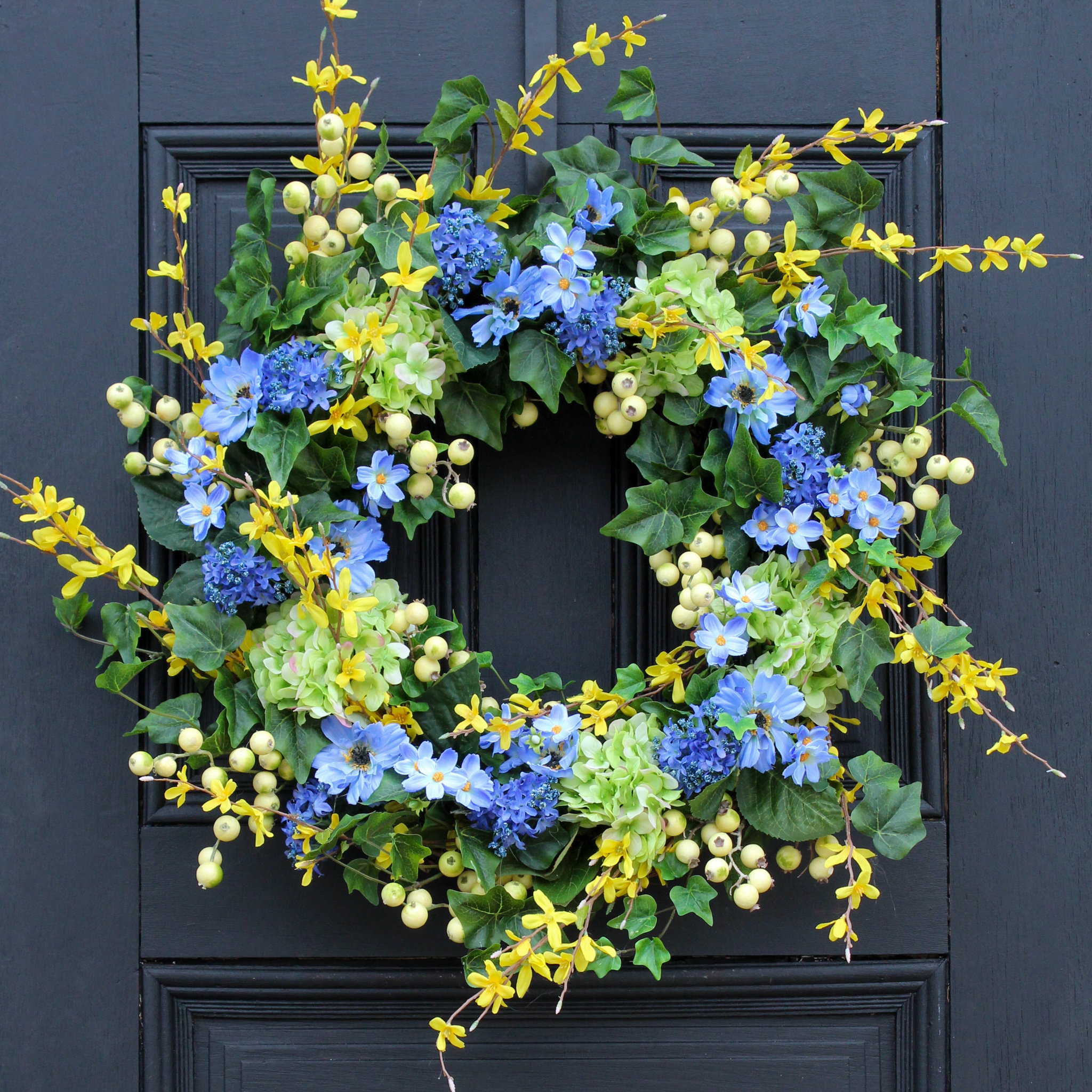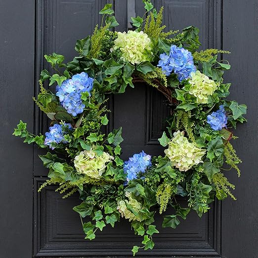 Amazon Com Hydrangea Wreath For Front Door Spring Wreaths And