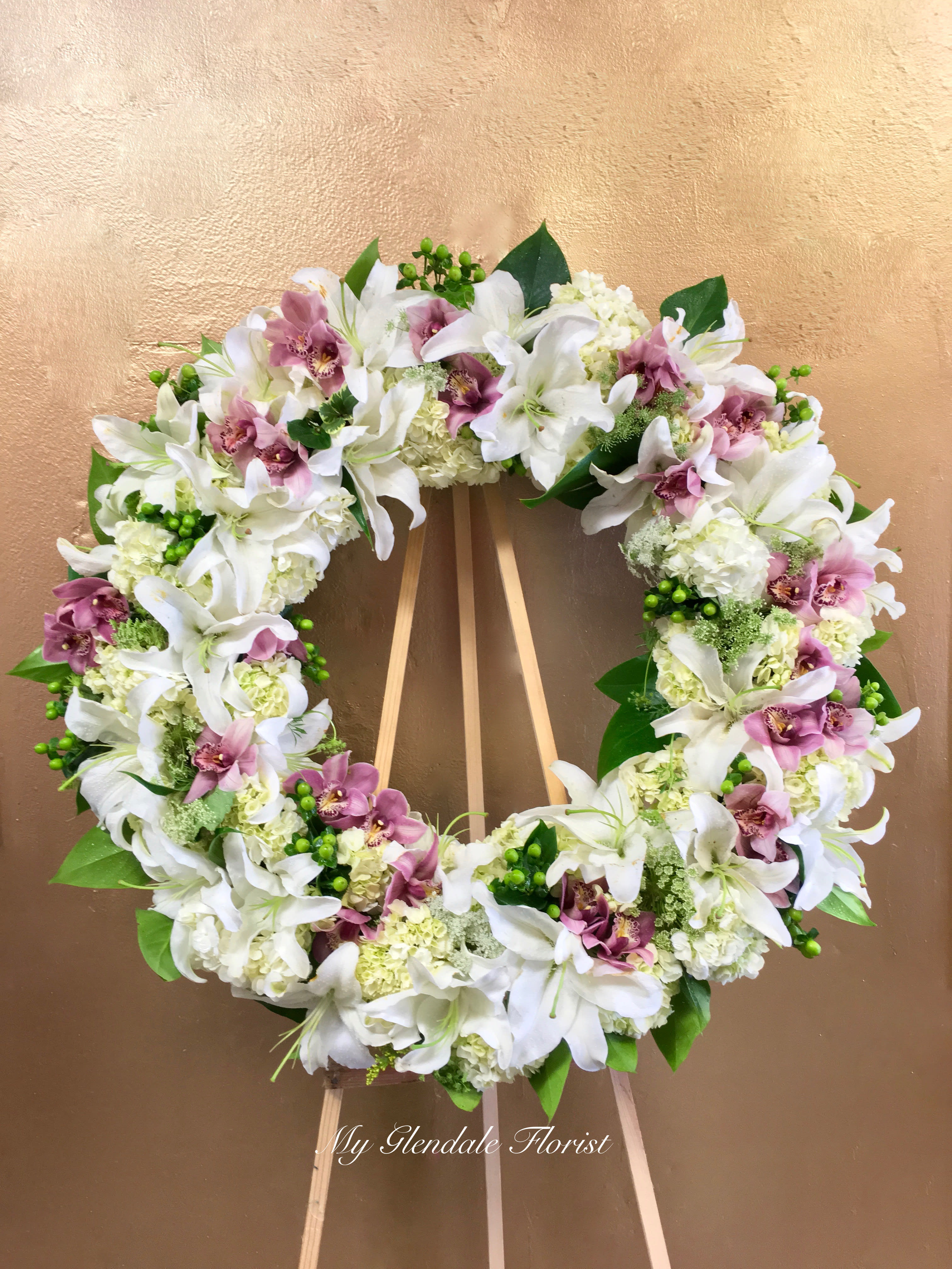 Orchid And Lily Wreath Funeral Service Glendale Florist In