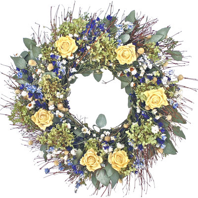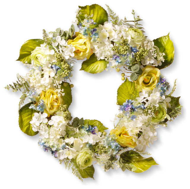 Amazon Com Summer Hydrangea Wreath Roses Wildflowers Yellow
