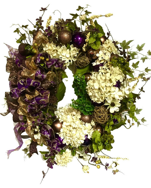 Elegant Christmas Hydrangea Wreath Cream Purple And Copper