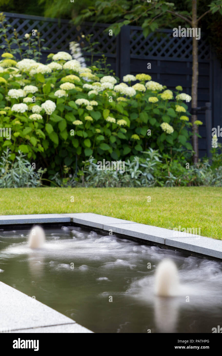 A Pool Water Feature In Motion With View To Herbaceous Border
