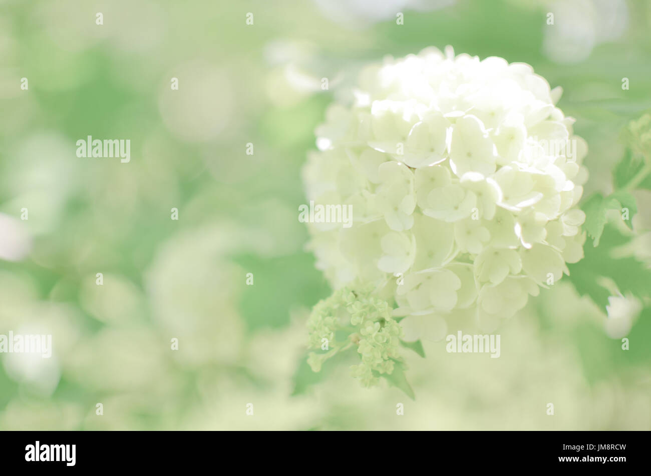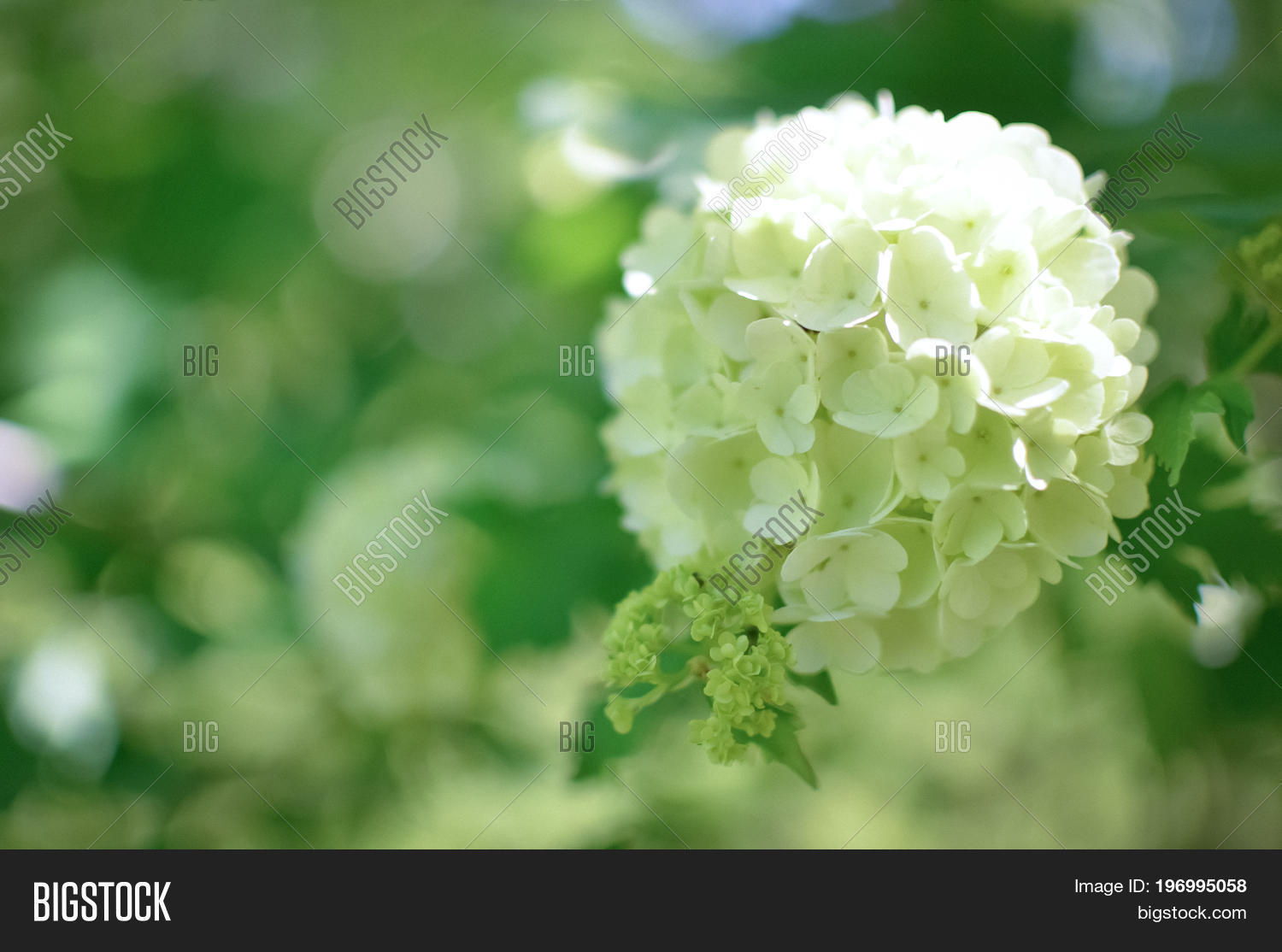 Hydrangea Arborescens Annabelle White Balls Summer Flowers Stock