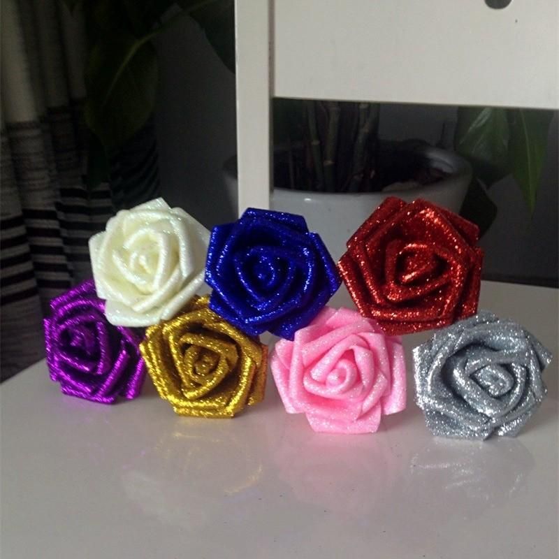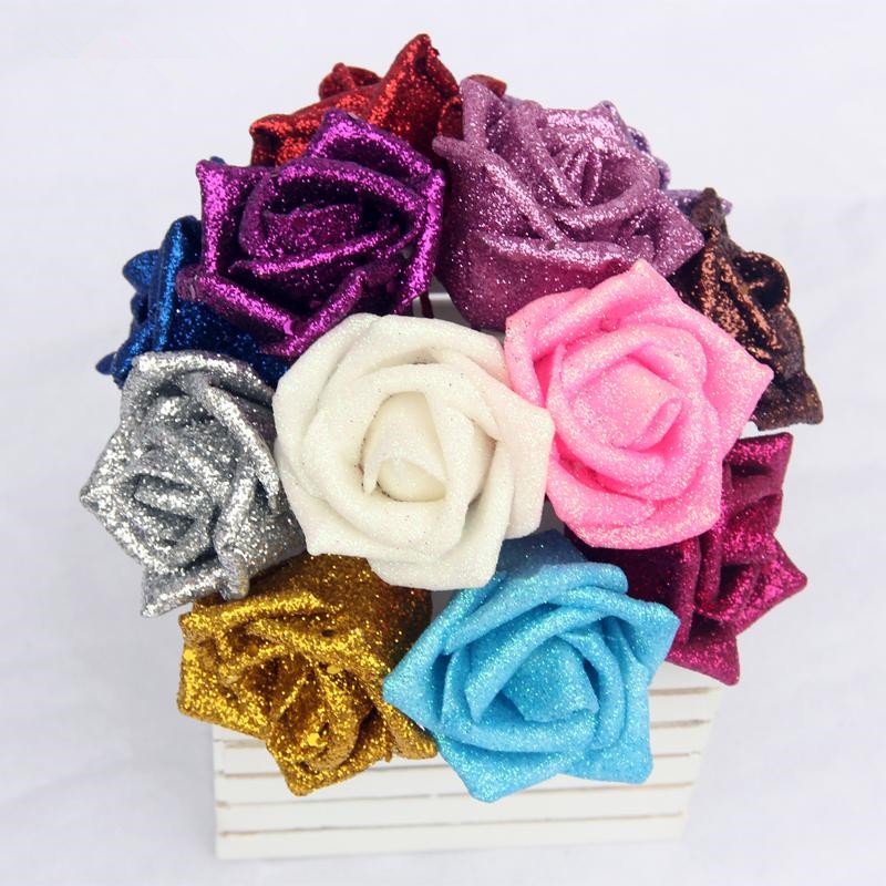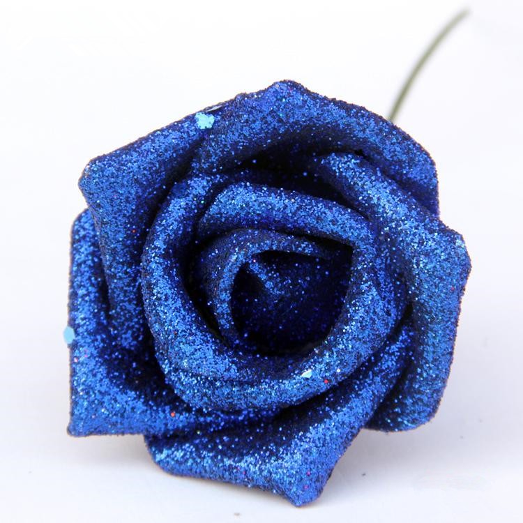6 Cm Buatan Glitter Mawar Diy Craft Biru Bouquet Mode Pernikahan