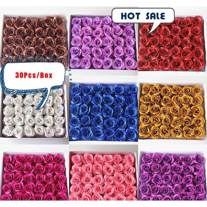 30 Pcs Rose Gift Box 7cm Rose Gold Powder Head Blue Enchantress