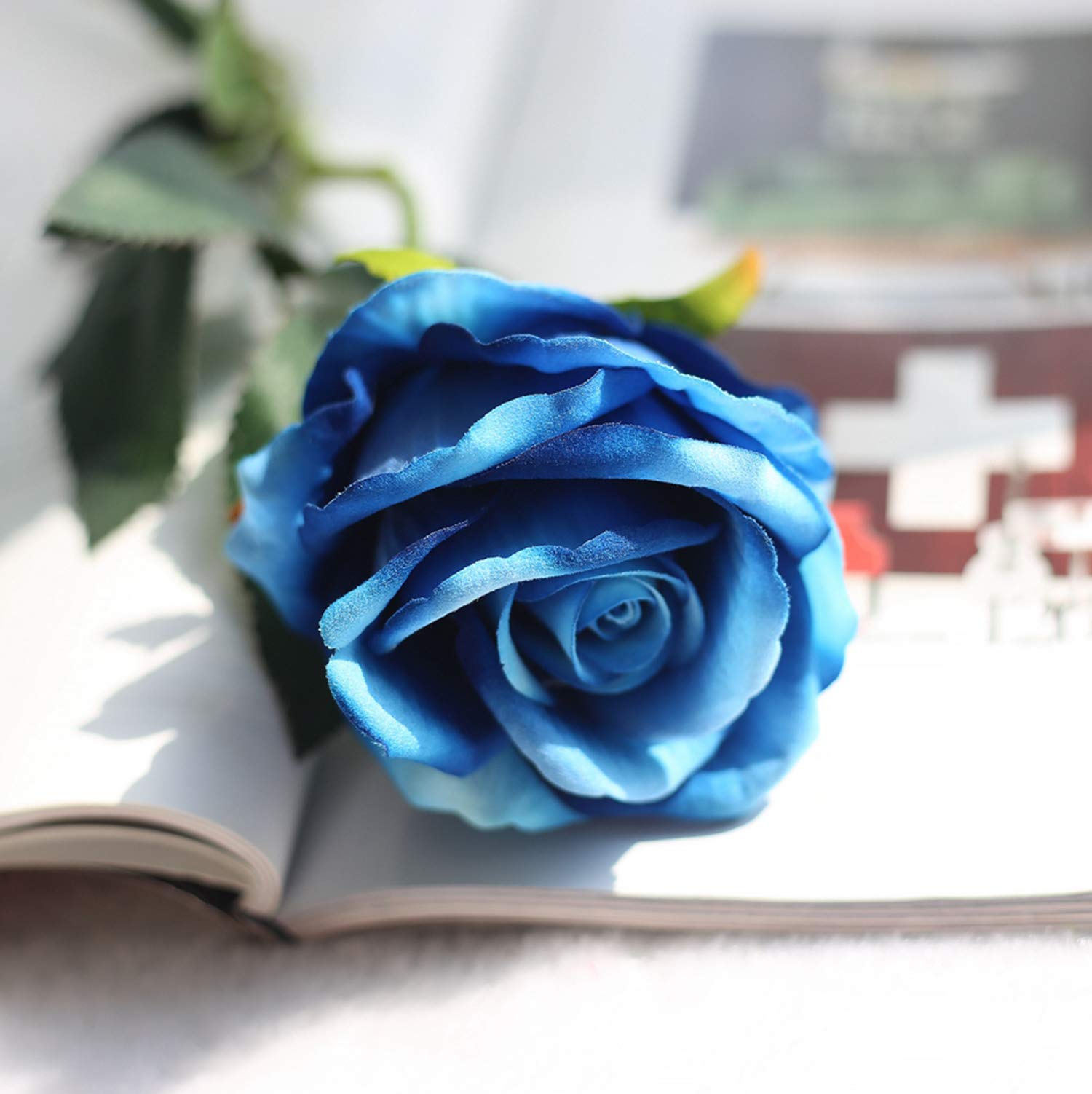 12pcs Fake Single Stem Royal Rose 23 62 Length Simulation Blue