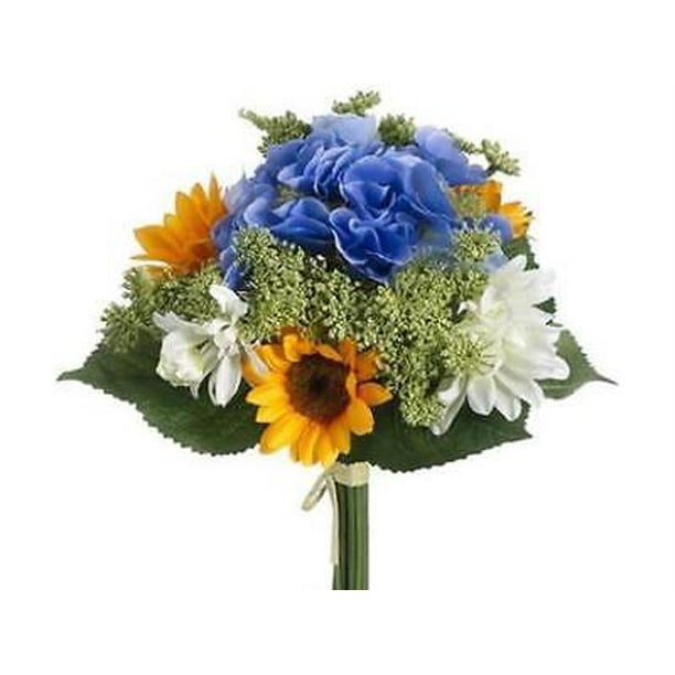 Sunflower Hydrangea Silk Flower Bouquet In Yellow Blue 11