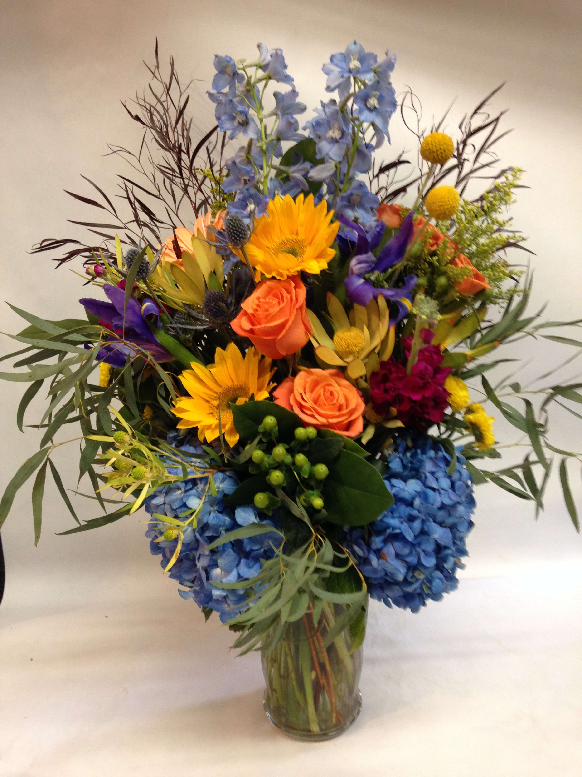 Sunflowers And Blue Hydrangeas Bill O Shea S Flowers Hasbrouck