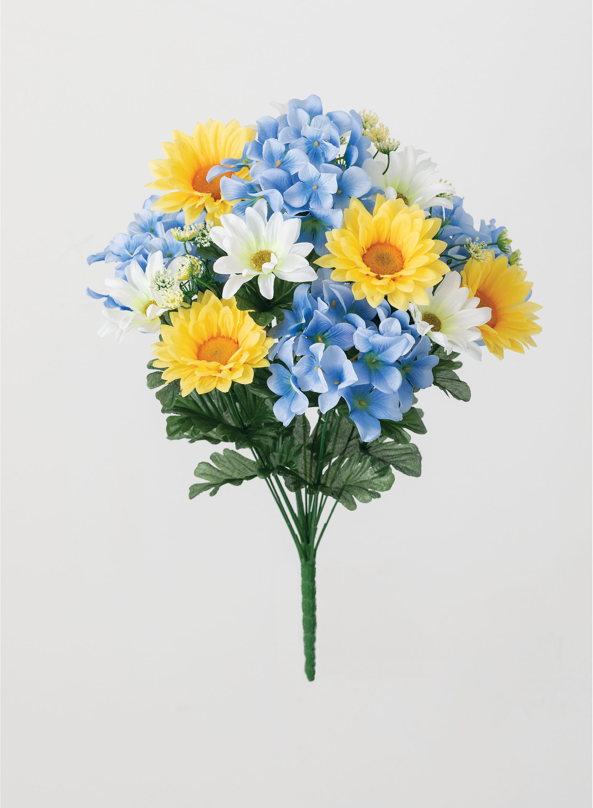 Blue Hydrangea Sunflowers Babies Breath Daisies Yellow Button
