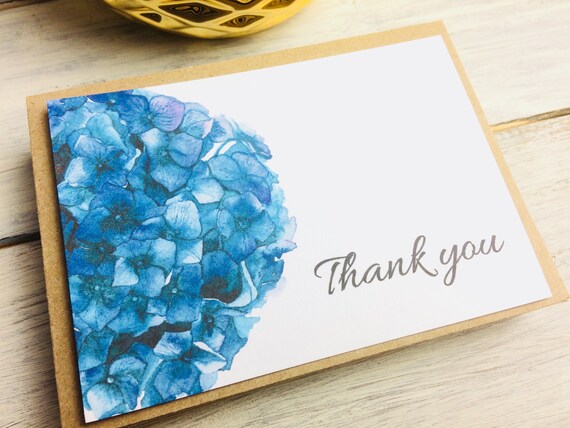 Set Of 12 Note Cards Blue Hydrangea Flower Brown Kraft Etsy