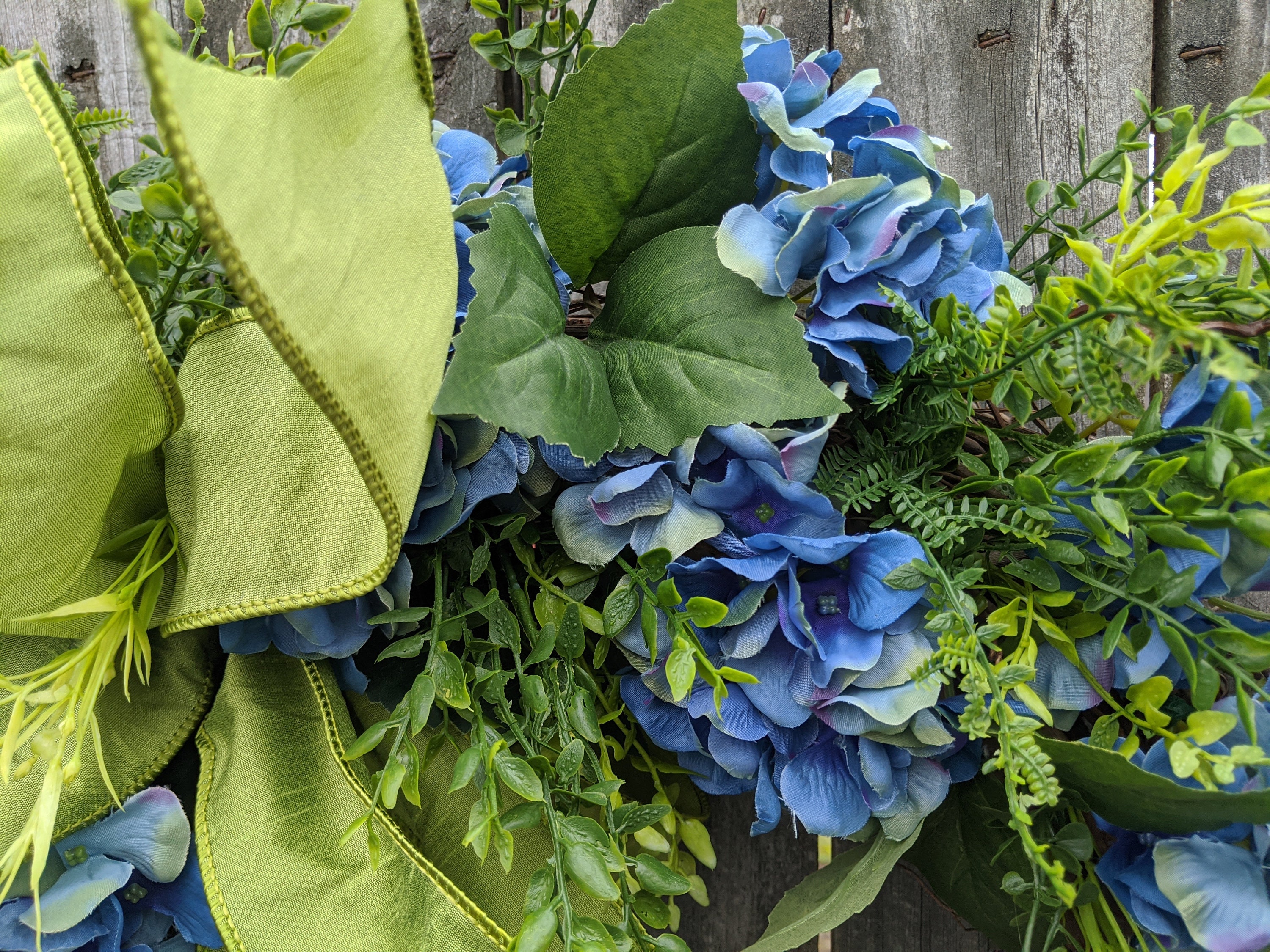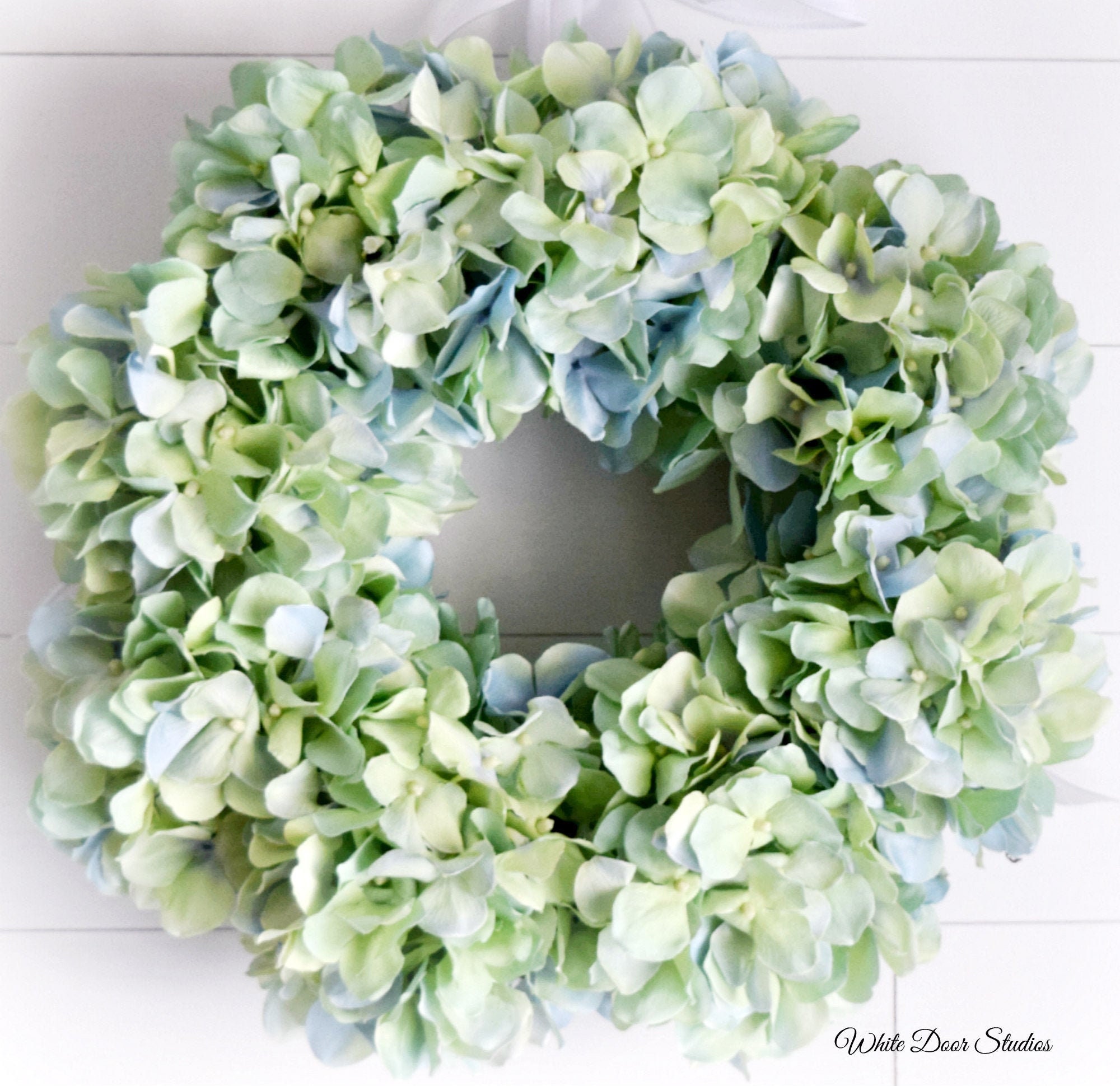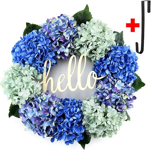 Blue Green Hydrangea Front Door Wreath