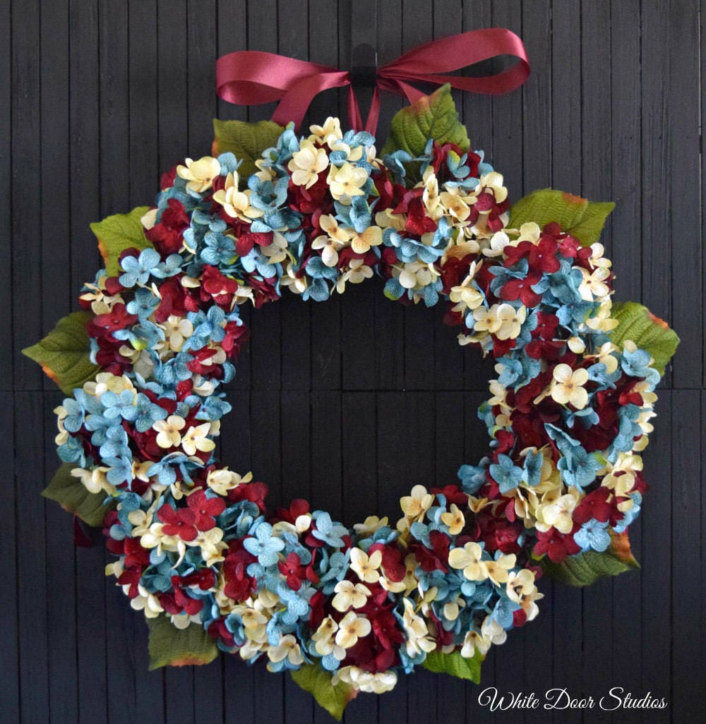Red Hydrangea Wreath Front Door Wreaths Outdoor Wreath Etsy
